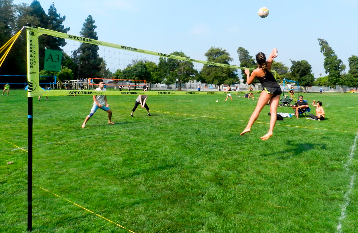 Real tournaments, Real Players! Elevate your volleyball game with the industry leading Spectrum Series portable outdoor volleyball system! For over 38 years the Spectrum Series is the number 1 choice for grass volleyball and beach volleyball. The Spectrum Series is the leading net system chosen among volleyball tournament directors and volleyball enthusiasts alike!