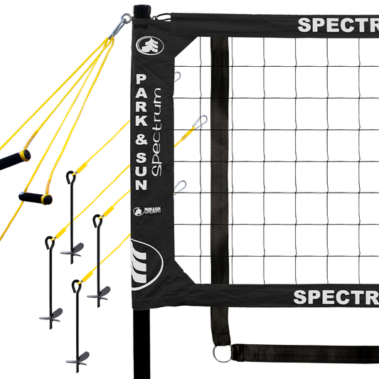 Real tournaments, Real Players! Elevate your volleyball game with the industry leading Spectrum Series portable outdoor volleyball system! For over 38 years the Spectrum Series is the number 1 choice for grass volleyball and beach volleyball. The Spectrum Series is the leading net system chosen among volleyball tournament directors and volleyball enthusiasts alike!