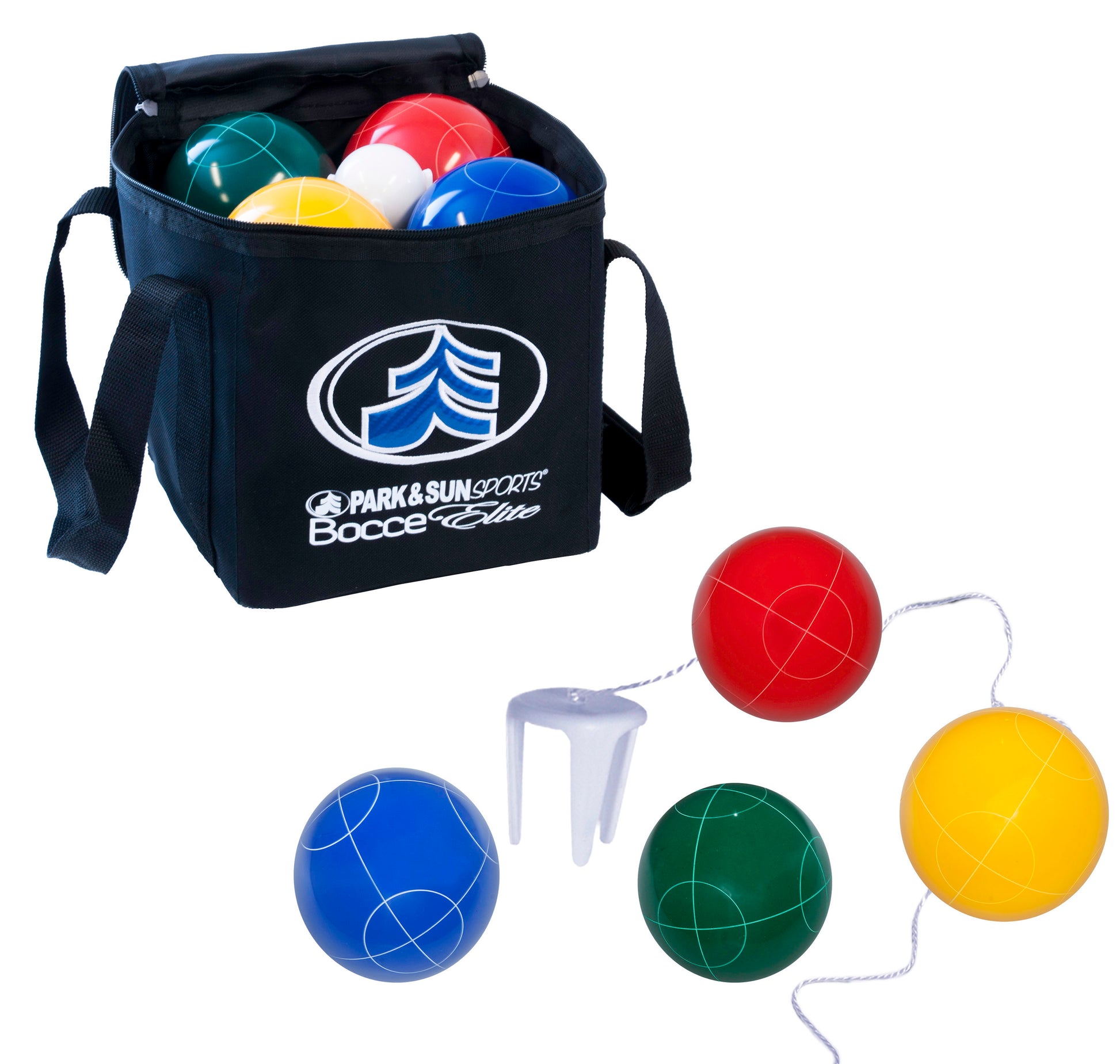 The Elite bocce ball sets have an additional padded ball divider within the carrying bag, providing an added level of protection. Each set features 2 blue, 2 green, 2 red and 2 yellow bocce balls with cylindrical grooved lines, allowing up-to 4 players to enjoy a game simultaneously.