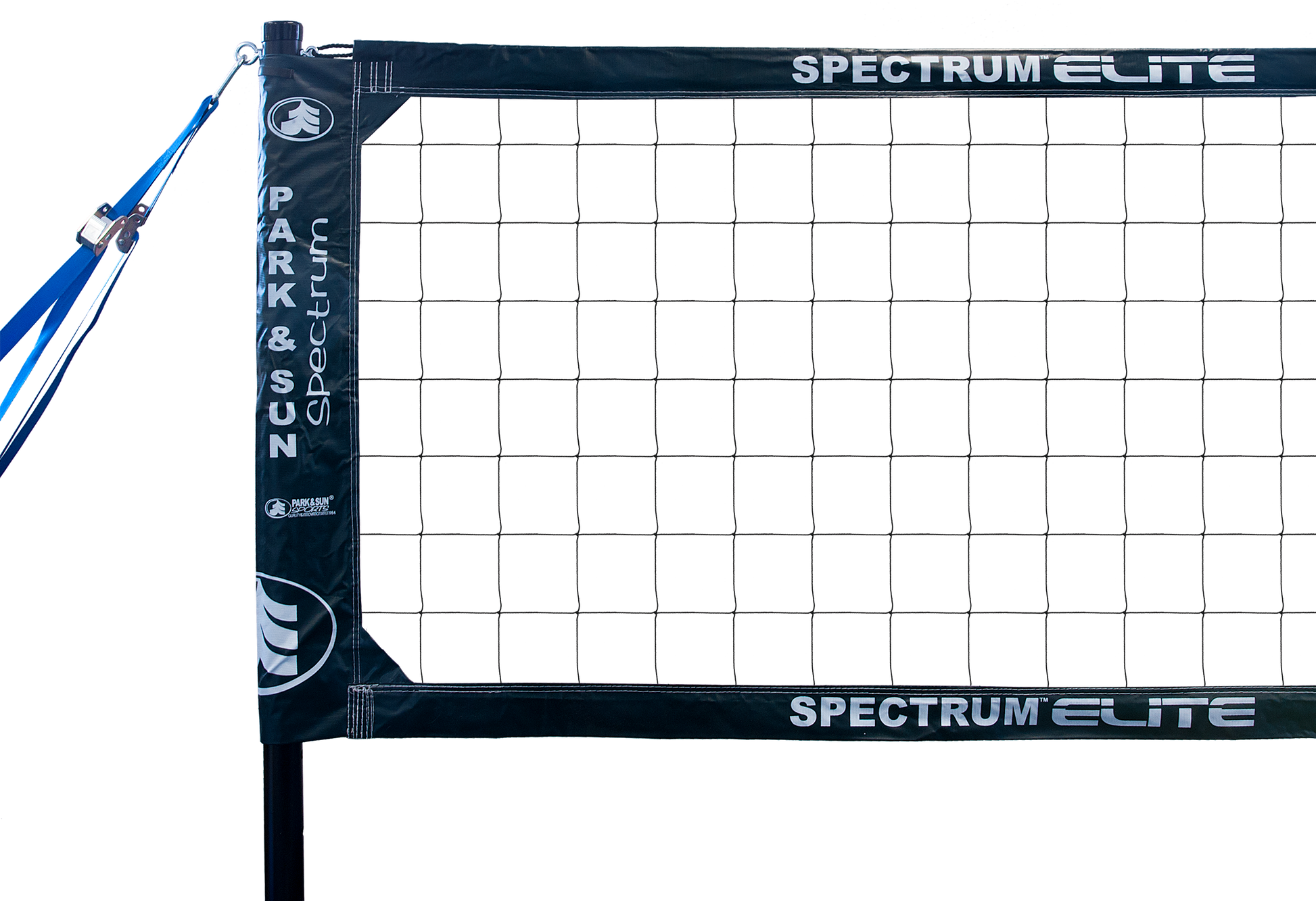 The Spectrum Elite features our volleyball regulation size Spectrum net and limited edition color, which measures 32' L x 3' H, and is pre-attached to the poles. The net tapes are 3" top and bottom with reinforced corners and 6" side sleeves, which distributes the net tension evenly from the top to the bottom of the net.